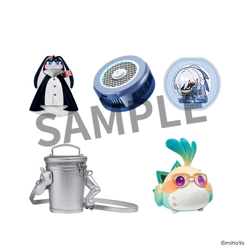 「崩壊:スターレイル」に登場する大人気キャラクターをモチーフとした「フード」「スマホ冷却ファン」「ショルダーバッグ」「ぬいぐるみ」を、画像の中からランダムでお届け。
