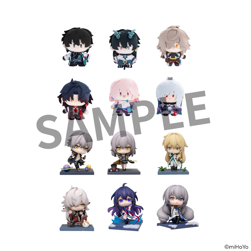 「崩壊:スターレイル」に登場する大人気キャラクターをモチーフとしたちびキャラぬいぐるみ又はデフォルメフィギュアを、画像の中からランダムでお届け。
